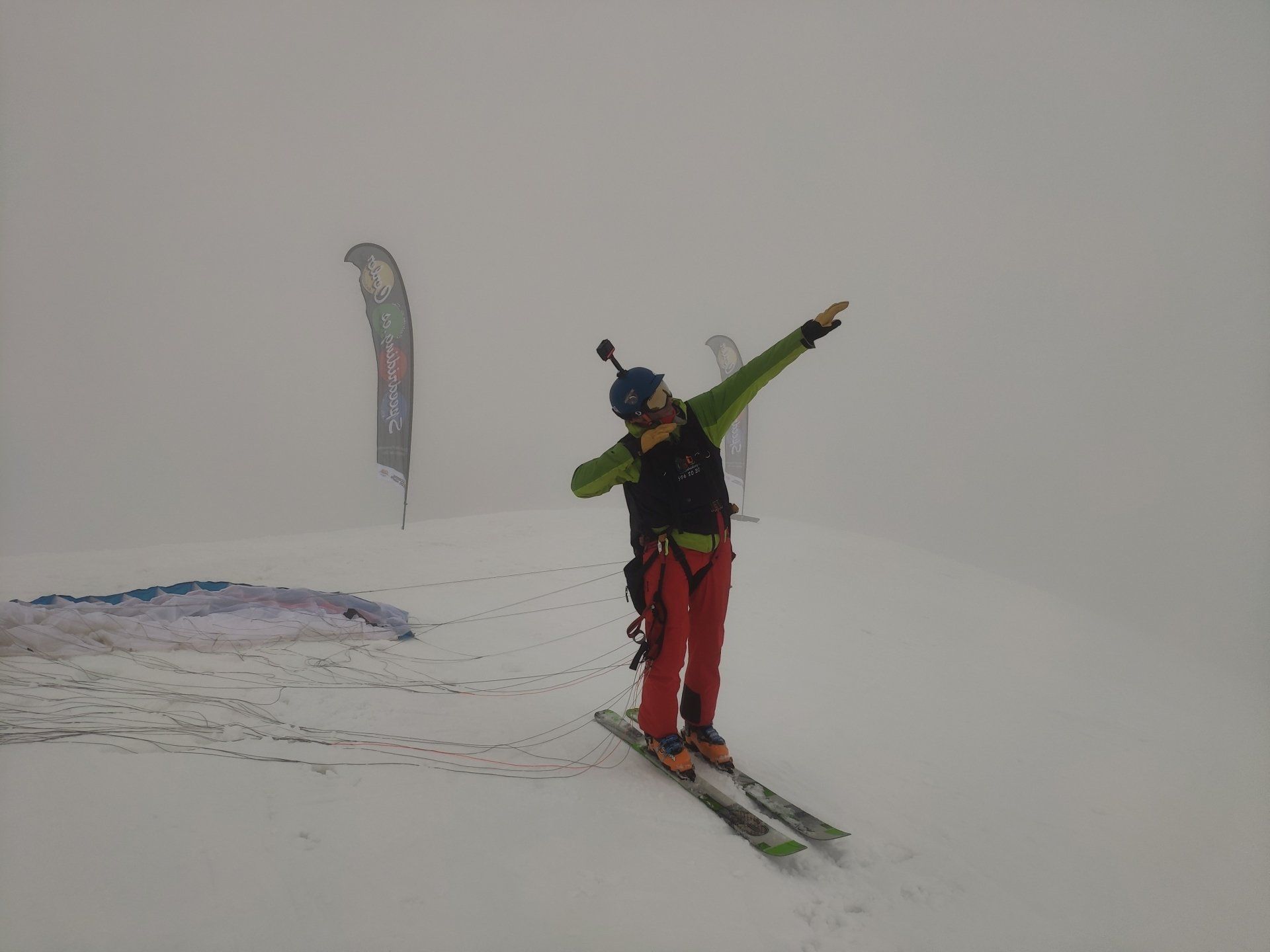 El Domingo, con nubes bajas en el despegue, no tardó en despejarse mientras que montábamos las puertas del gigante. Un espectáculo ver a los participantes bajar por un recorrido tan largo, con un desnivel planteado de 700 m, de los cuales no pudimos aprovecharlos al 100% por la visibilidad.